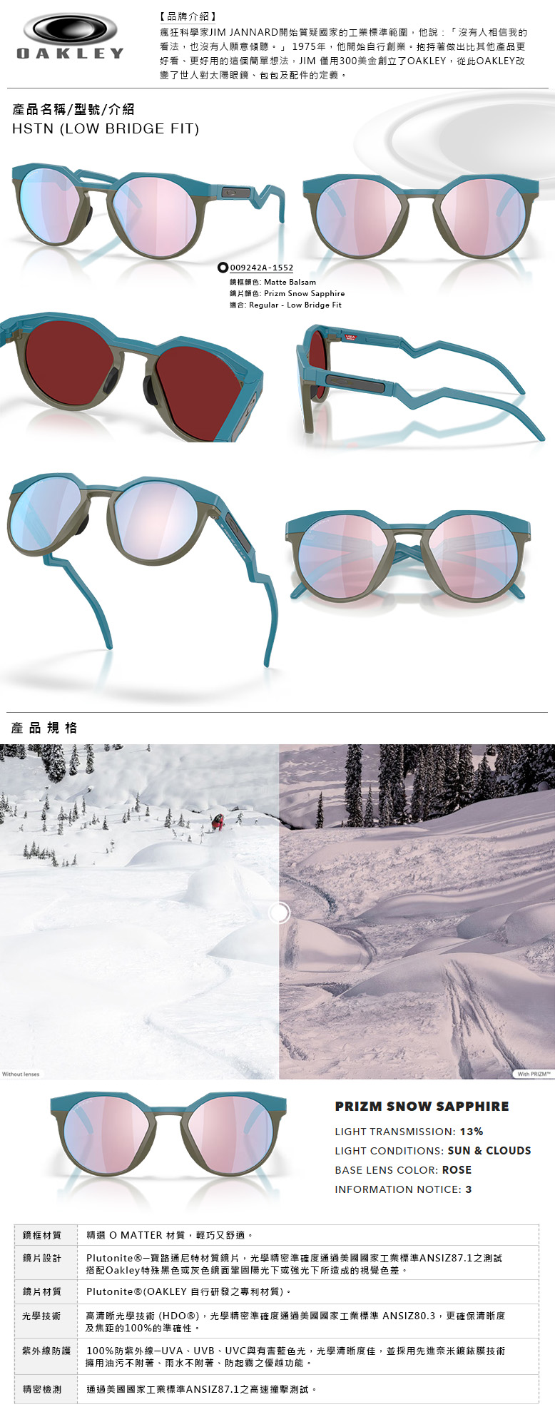 OAKLEY HSTN (LOW BRIDGE FIT) 亞洲版 PRIZM 色控科技 雪地用