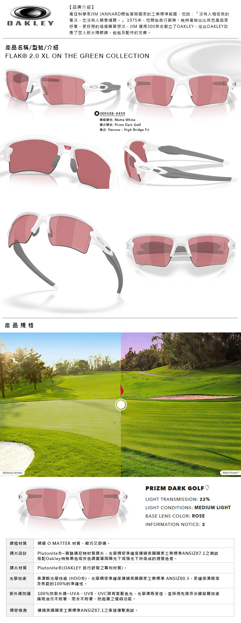 OAKLEY FLAK® 2.0 XL ON THE GREEN COLLECTION PRIZM 色控科技 高爾夫用