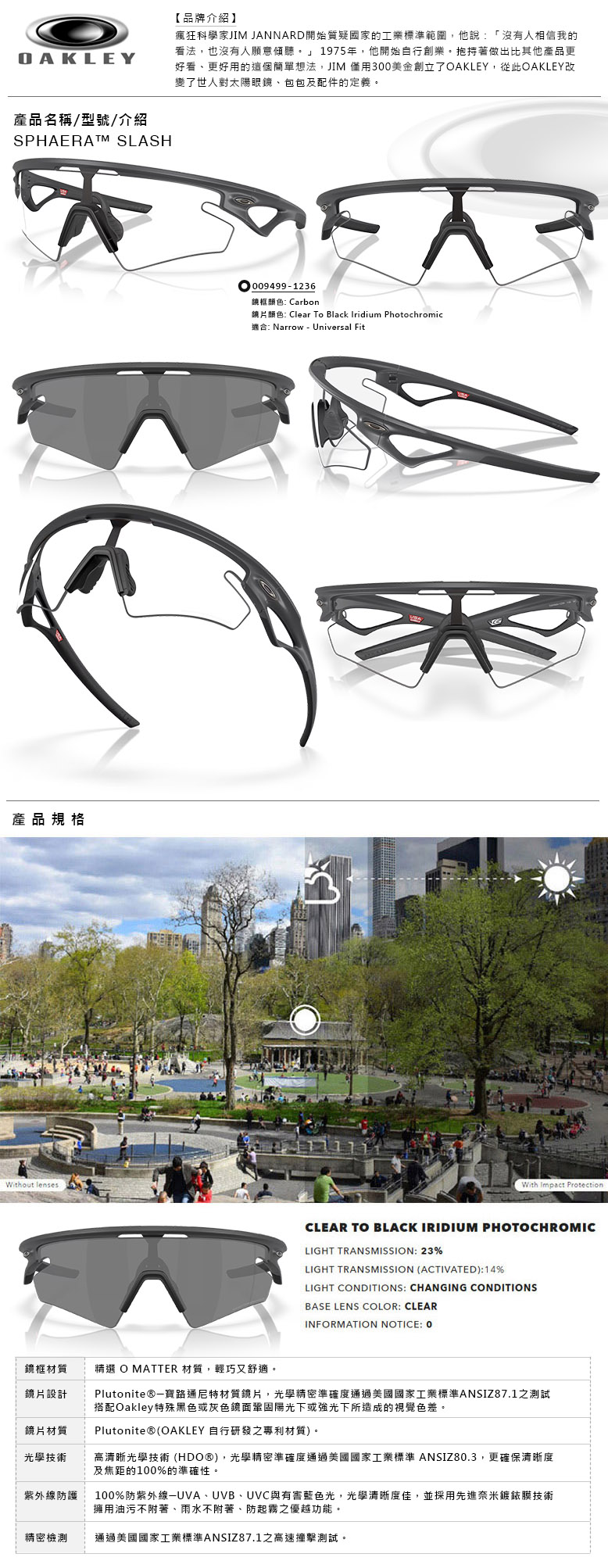 OAKLEY SPHAERA™ SLASH 自動變色片