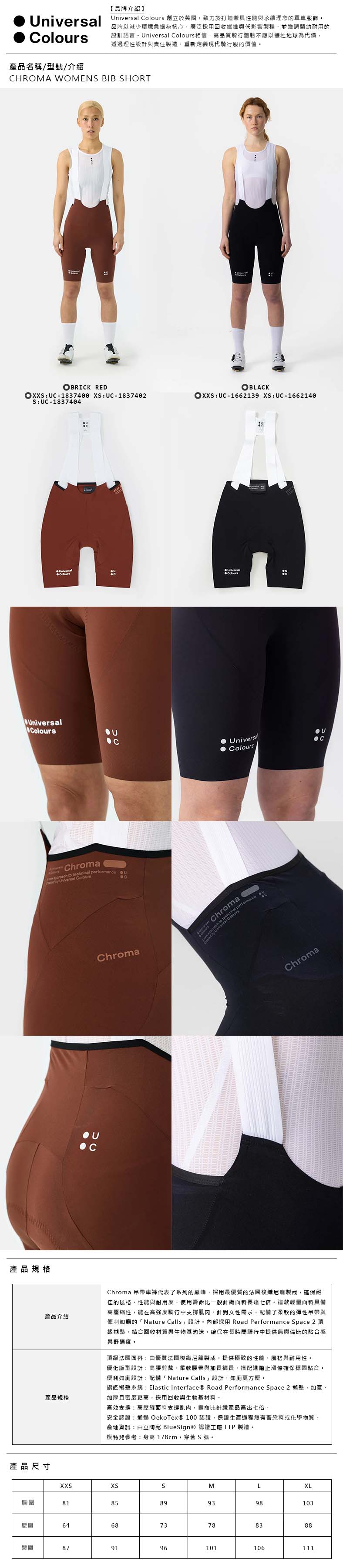 CHROMA WOMENS BIB SHORT女吊帶短車褲